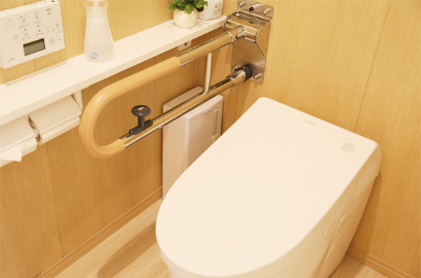 院内は靴のままで入れるため、スリッパに履き替える必要はありません。また、ドアはすべて引き戸ですので全く段差のないバリアフリーになっています。トイレには大型の手すりを着けてありますので、安心してご利用頂けます。車椅子もユニットの真横まで入れ、車椅子のままでも治療ができます。